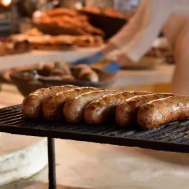 炭場で焼く自家製ソーセージ